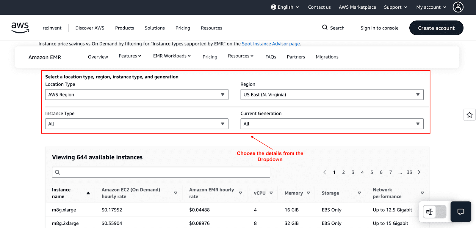 Data locality: Keeping your data in the same region as your EMR cluster helps avoid data transfer charges.