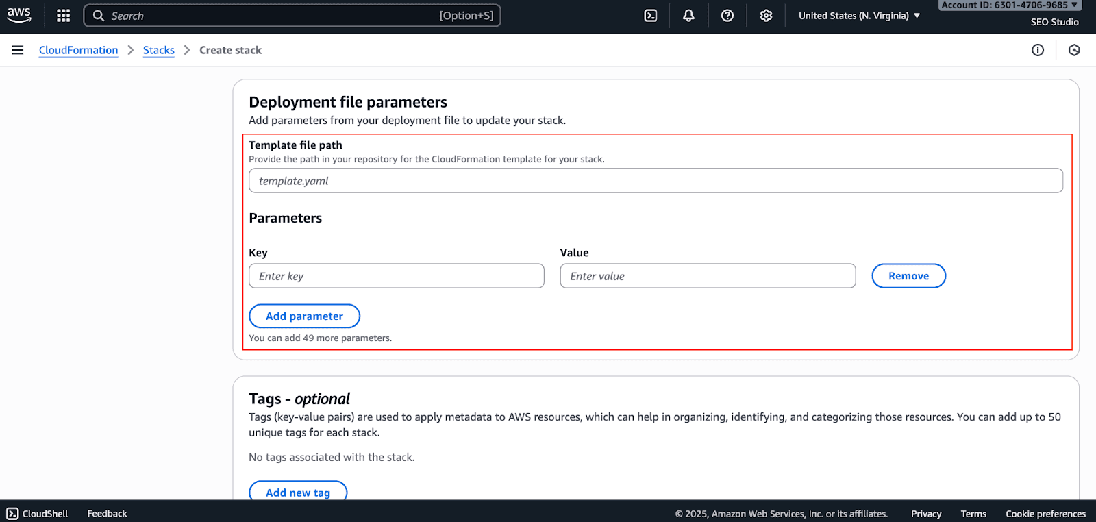Deploy the Stack: Verify your parameters, check the box that states you acknowledge IAM resources will be created, and click Create stack.