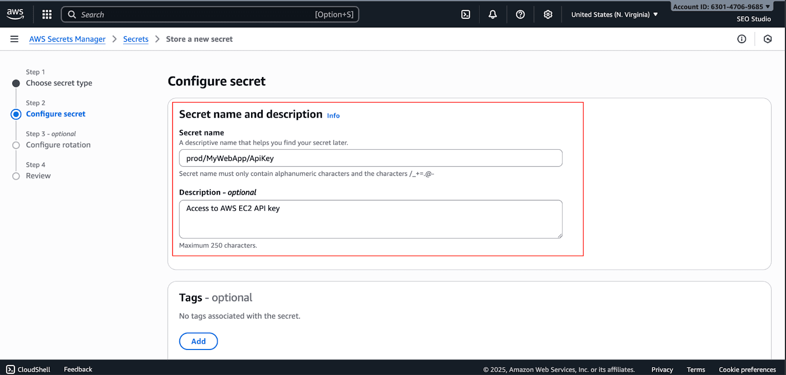 Still saving passwords, like API keys, in Word docs, Excel files, or in files or environment variables? Same as the others, you are missing the point, as this is the biggest security risk. With the expansion of infrastructure, organizing the credentials will become a daunting and overwhelming task. Imagine this: you are organizing passwords and keys in Excel, and one random person got access, that is the enormous mess that you will be in. That difference is the reason why bookkeeping is turned upside down in AWS Secrets: it is game-changing.