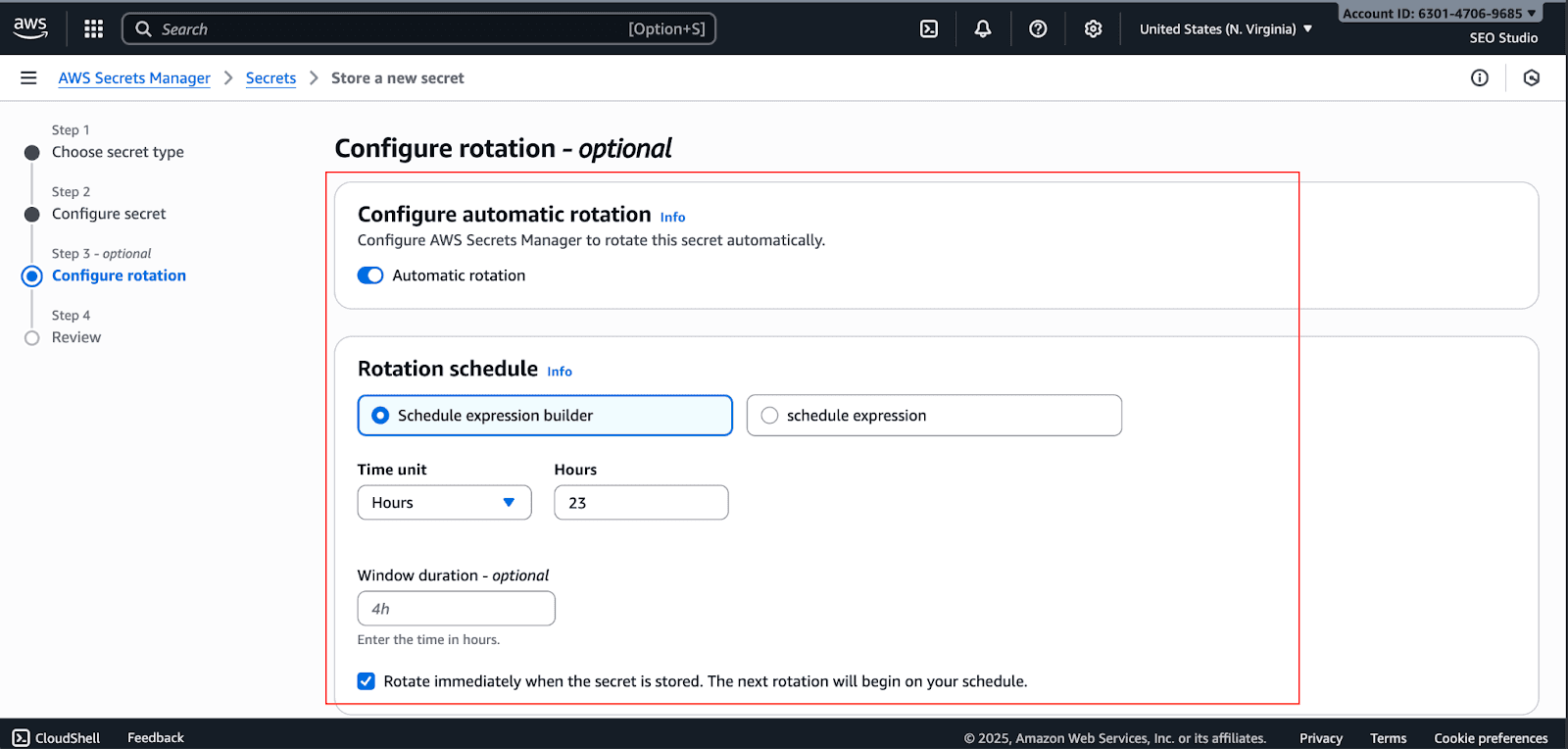 Enable Automatic Rotation: For all critical credentials, such as database passwords, the intervals for automatic rotation should be minimal to decrease the window of opportunity for attackers.