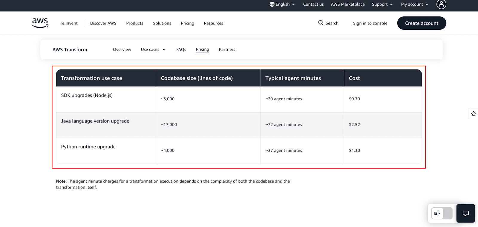 AWS Transform offers free agent support for evaluation and basic modernization scenarios. However, there are costs associated with advanced or customized transformation agents, and of course, the standard usage fees for AWS services.