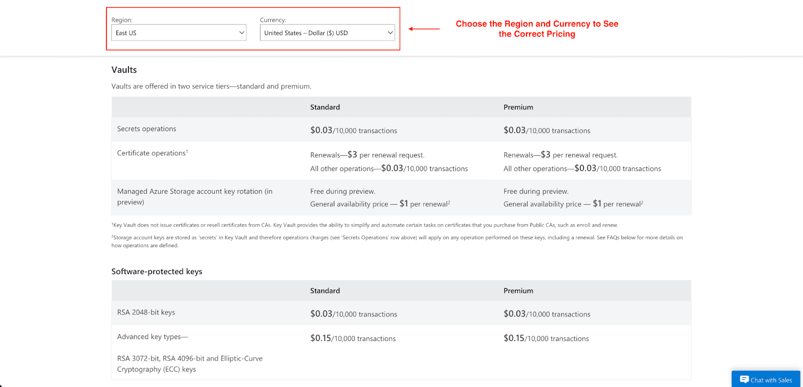 Region Choice: Operation costs and key expenses differ by the Azure regions.